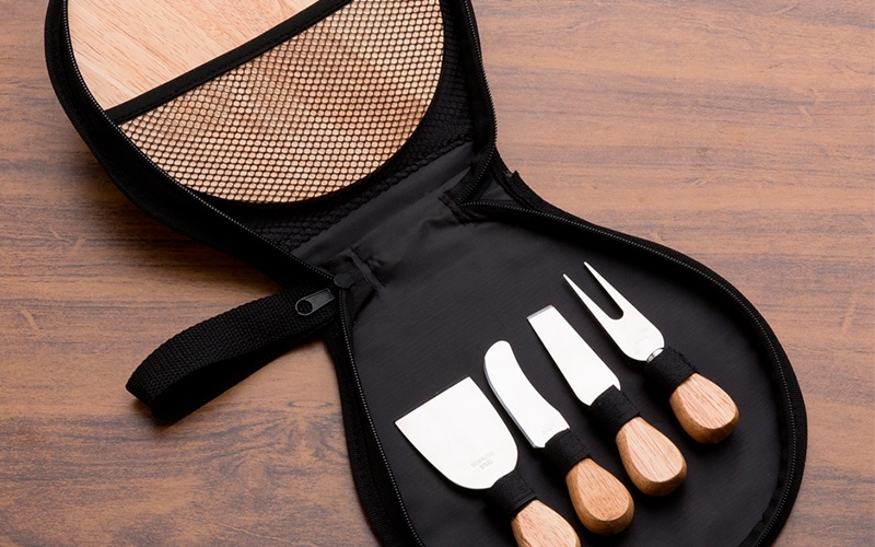 Imagine receber seus convidados com uma tábua de queijos impecavelmente montada, onde cada detalhe foi cuidadosamente pensado: Espátula Grande - permite servir fatias generosas de queijos firmes, criando combinações irresistíveis que aguçam o paladar -, Garfo Versátil - ideal para manusear pedaços de queijo e compor sua tábua com praticidade e estilo -, Faca Reta Afiada - para cortes precisos em queijos duros ou semiduros -, Espátula Pequena - perfeita para servir queijos cremosos e delicados -, Tábua de Bambu Sustentável, Estojo de Nylon com zíper e alça para fácil transporte. Leve o charme das degustações profissionais para a sua casa ou presenteie alguém especial com este kit que alia funcionalidade e design. Seja em um piquenique ao ar livre, em um jantar íntimo ou em uma celebração, você estará pronto para proporcionar experiências únicas e deliciosas.